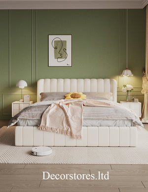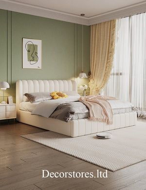 سرير لورانس هو تحفة تجمع بين التصميم الكلاسيكي والراحة العصرية. يتميز السرير برأسية مبطنة ومقسمة إلى أجزاء رأسية تضفي لمسة من الفخامة والتفرد، مما يجعله قطعة فريدة في غرفة النوم. القاعدة المنجدة بتصميم ناعم تكمل المظهر الأنيق وتوفر دعماً قوياً للنوم المريح.